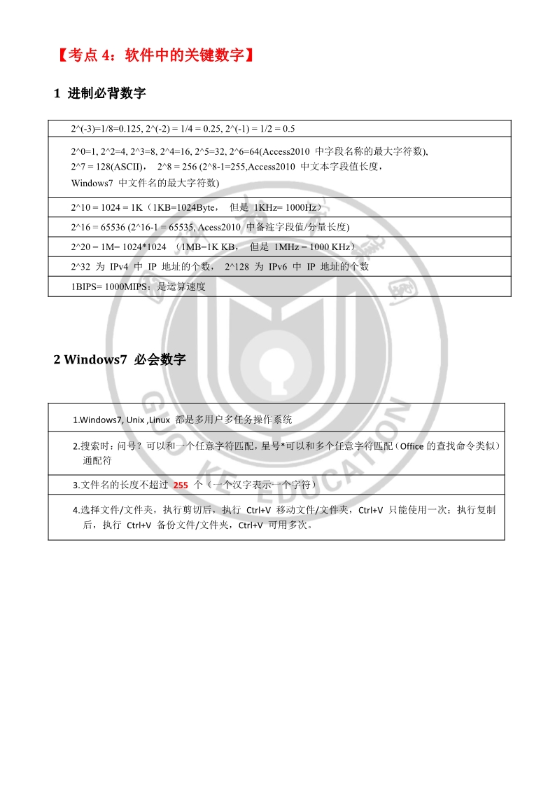 山东专升本公共计算机考点—软件中的关键数字