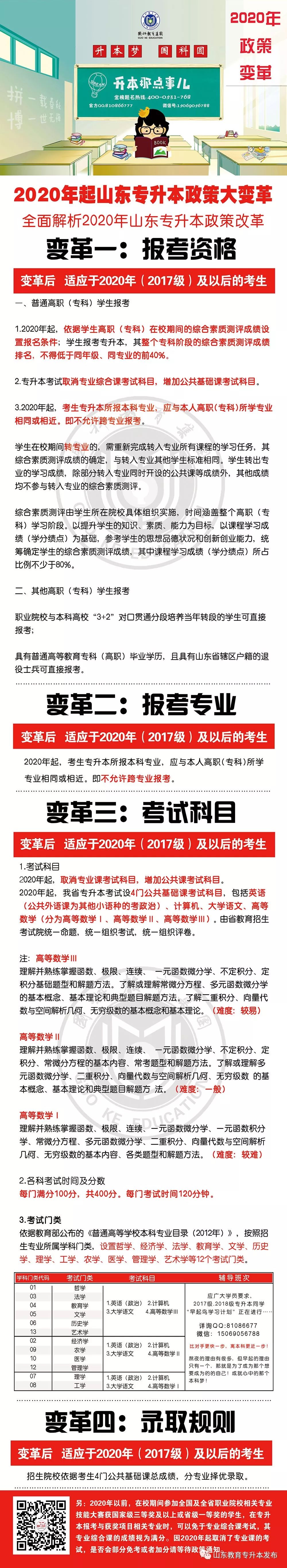 2020年起专升本政策改革后,英语100分,计算机100分,大学语文100分,高等数学100分,一共400分。5-7月是打基础的最好时期,基础决定后期提分的多少。因此这个时期要制定周密的学习计划,打好公共课基础。