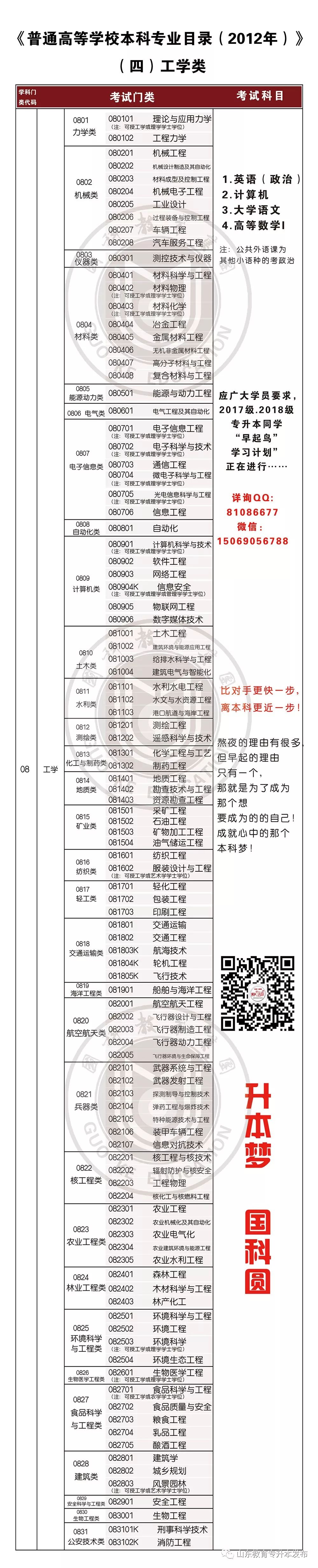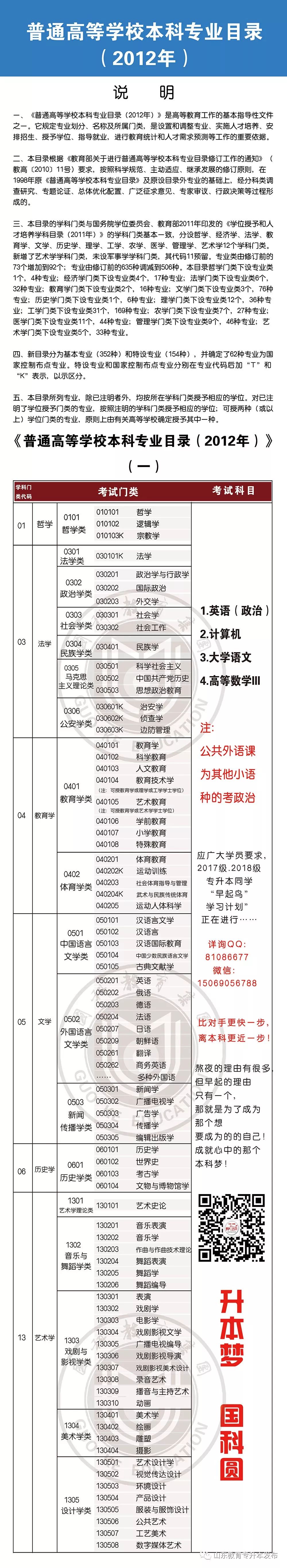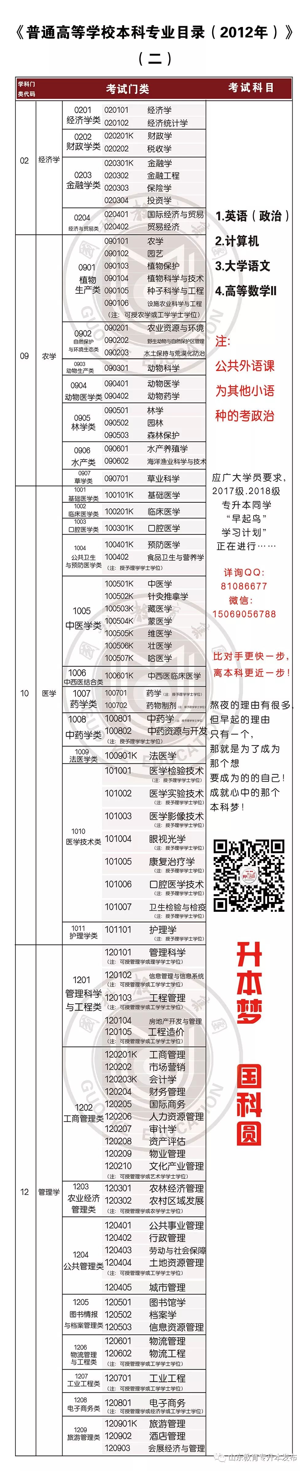 注:考生报考的本科专业,必须与考生的专科毕业专业所对应的本科专业属同一学科门类,考生的专科毕业专业所对应的本科专业代码,必须与所报考的本科专业代码的前2位相同)。
